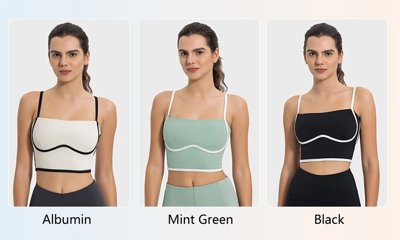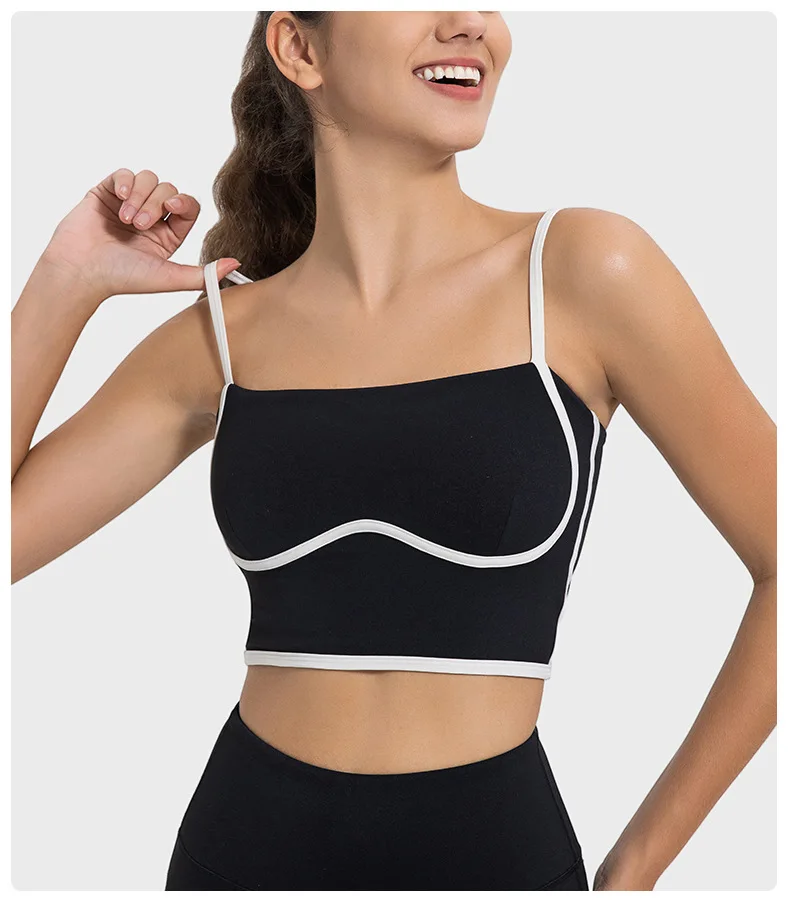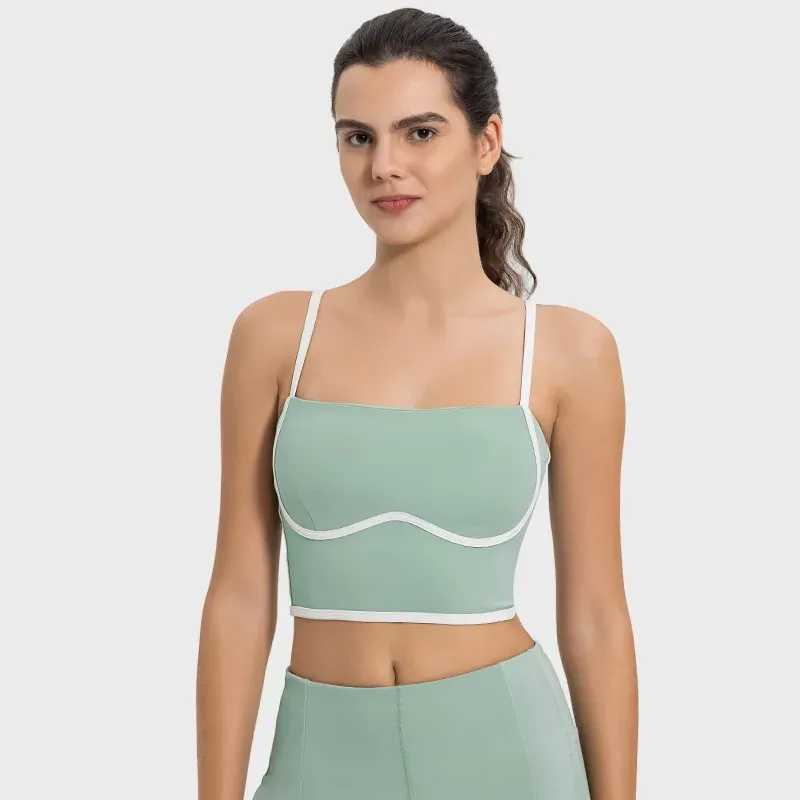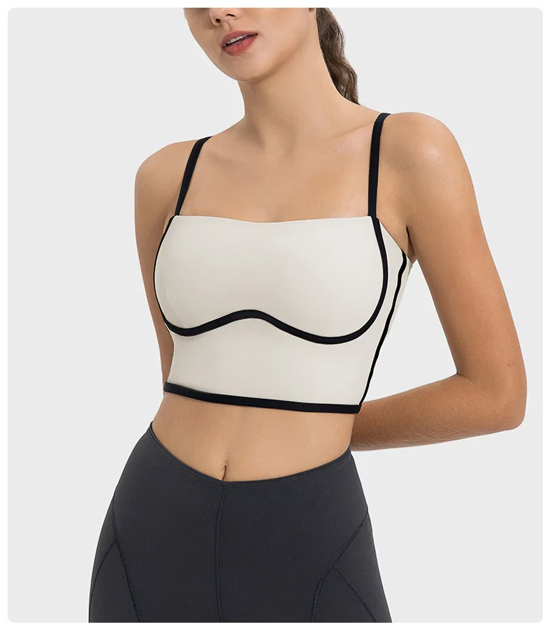 Wholesale Women's Sexy Yoga Underwear Fitness Sports Bra Fitted Top Spaghetti Straps Nude Tube Yoga Sports Bra Top