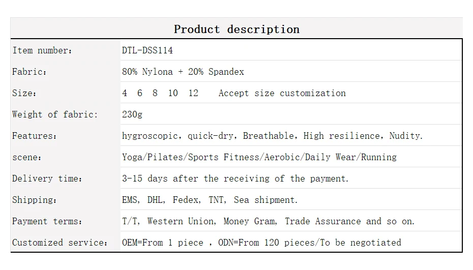 A:Our factory has 10 years of experience, specializing in high-endyoga wear manufacturing. Our fabrics and the American Lycra company,Britain's Coats Line, Korea's Hyosung stands tall,Cooperate with multiple fabric suppliers.and we also process for many well-known brands.