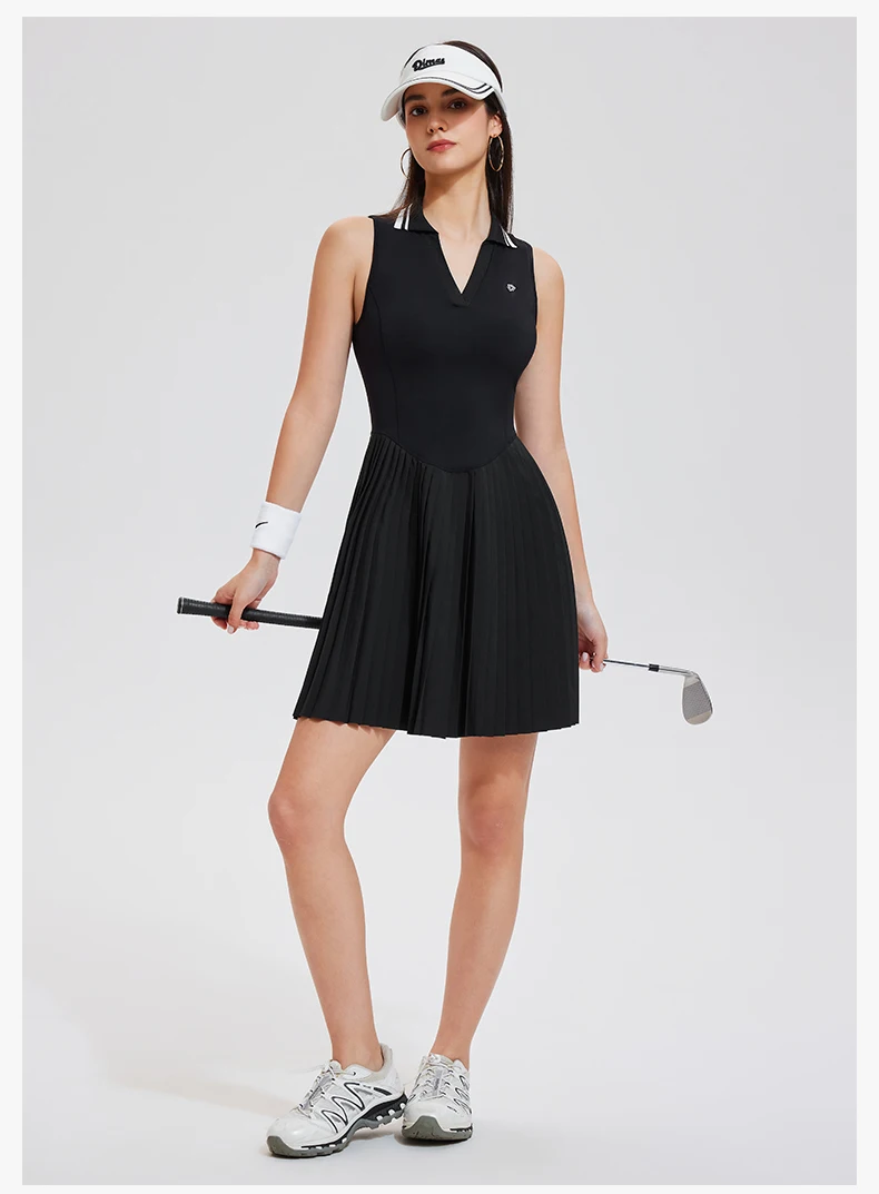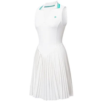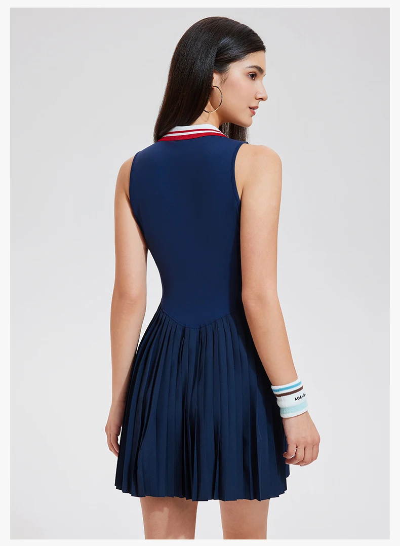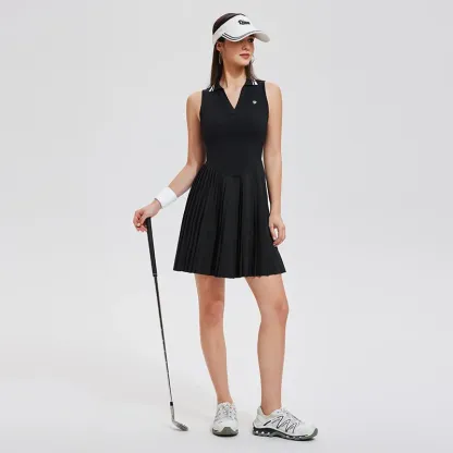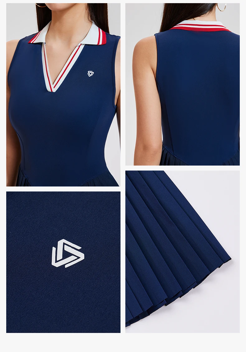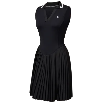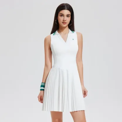 Wholesale Sportswear Outdoor Polo Neck Contrast Color Sleeveless Tennis Athletic Skirt Quick Dry Women's Tennis Pleated Dress