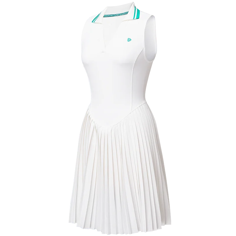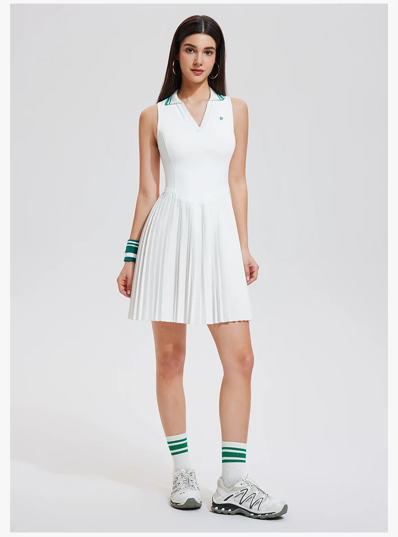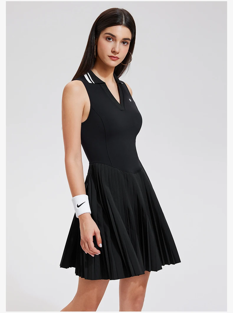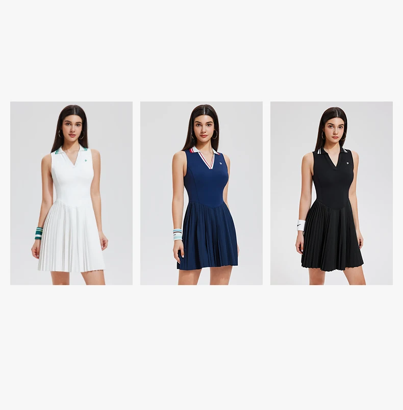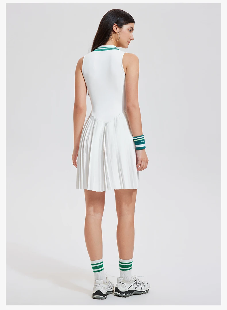 Wholesale Sportswear Outdoor Polo Neck Contrast Color Sleeveless Tennis Athletic Skirt Quick Dry Women's Tennis Pleated Dress