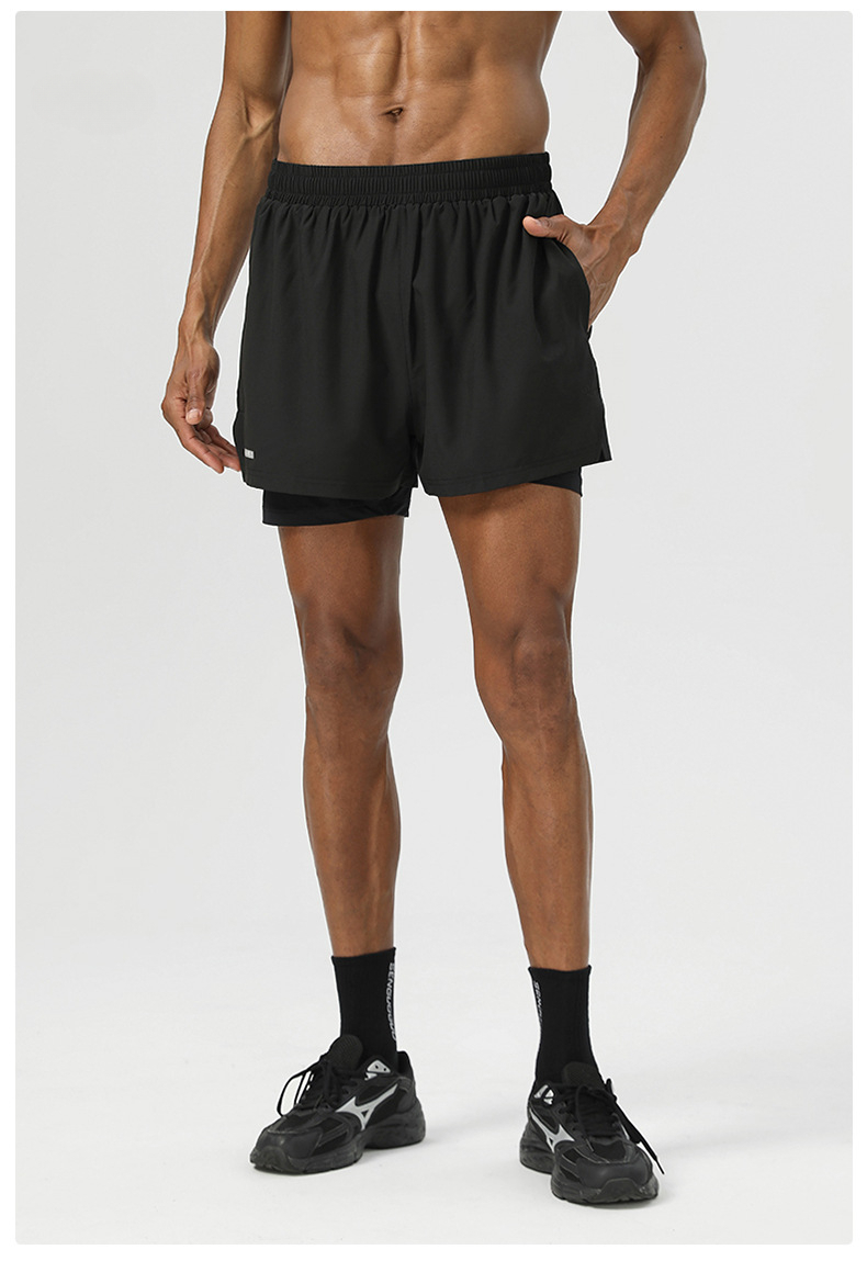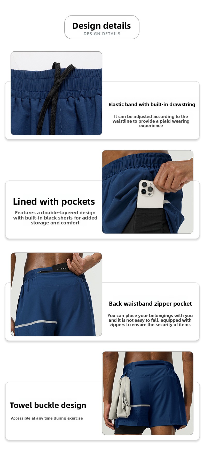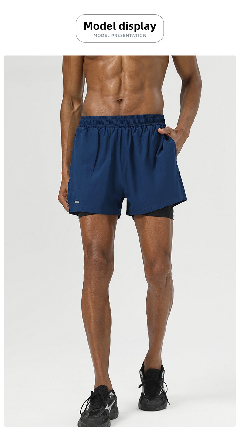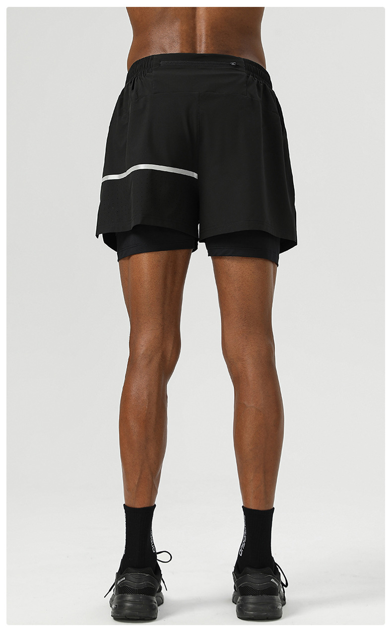 2025 New Fake Two-Piece Sports Shorts Elastic Breathable Short-Length Pants Marathon Training Reflective Stripe Fitness Shorts