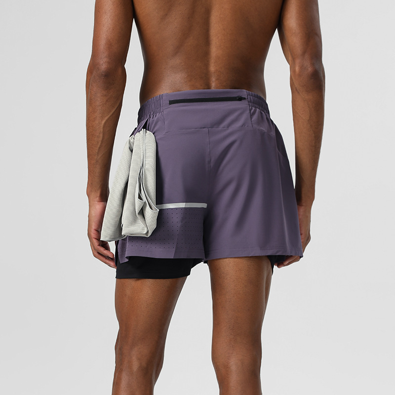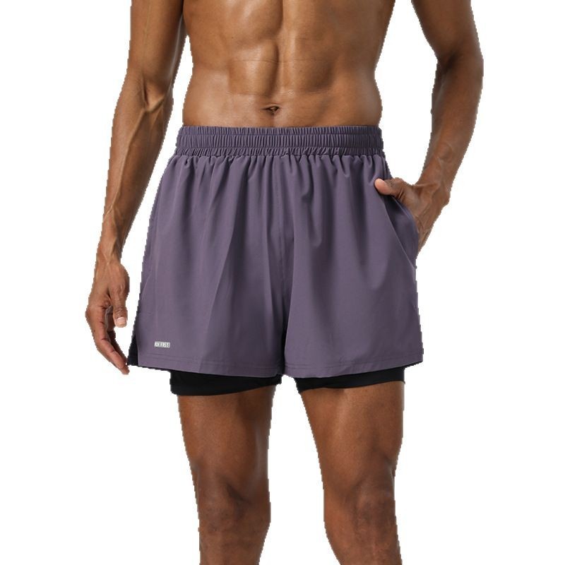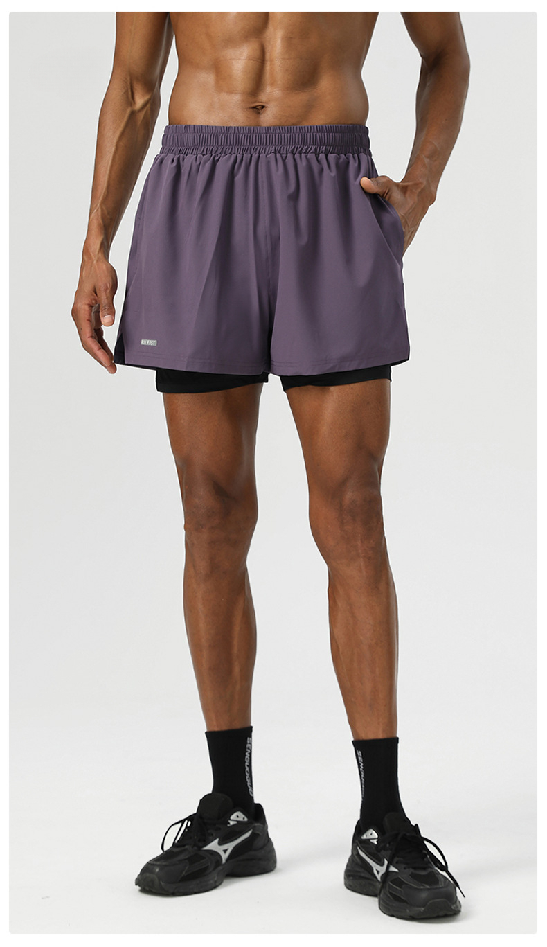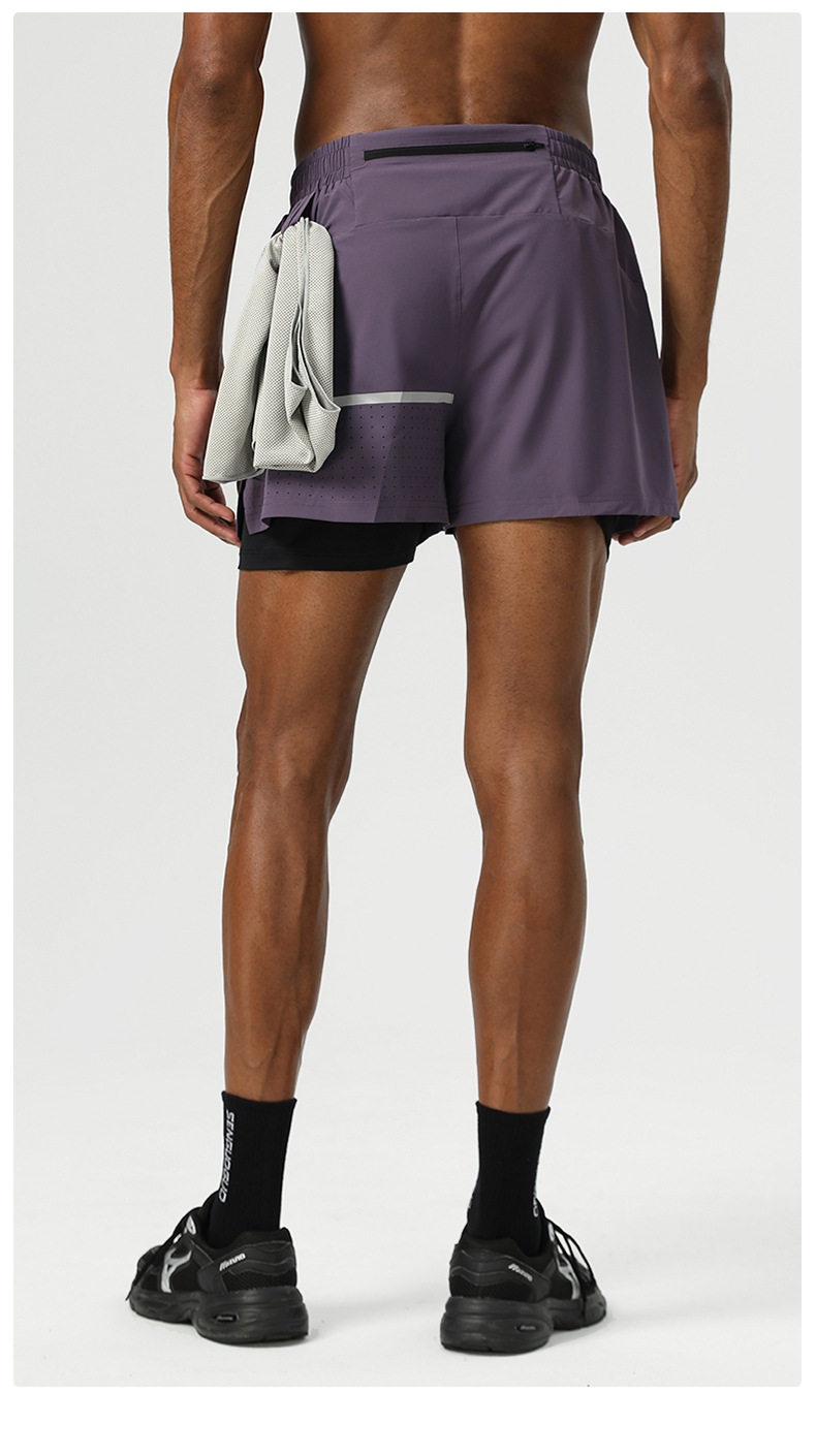 2025 New Fake Two-Piece Sports Shorts Elastic Breathable Short-Length Pants Marathon Training Reflective Stripe Fitness Shorts