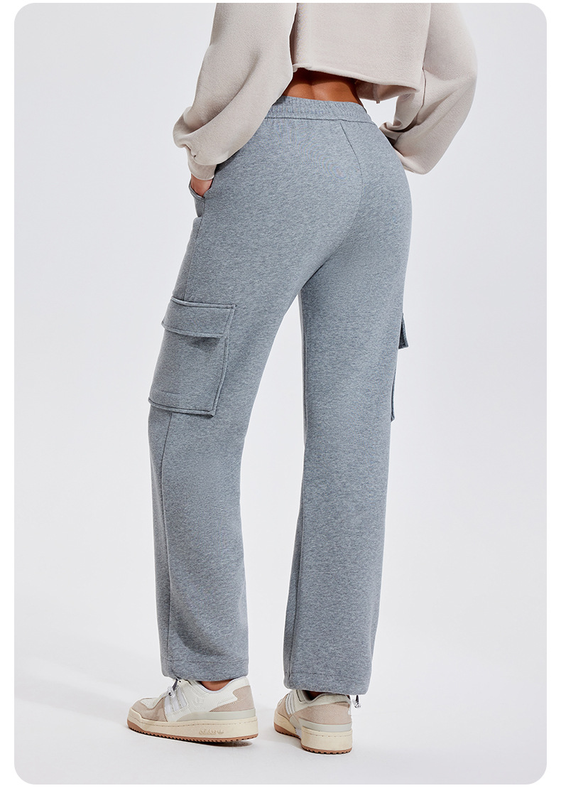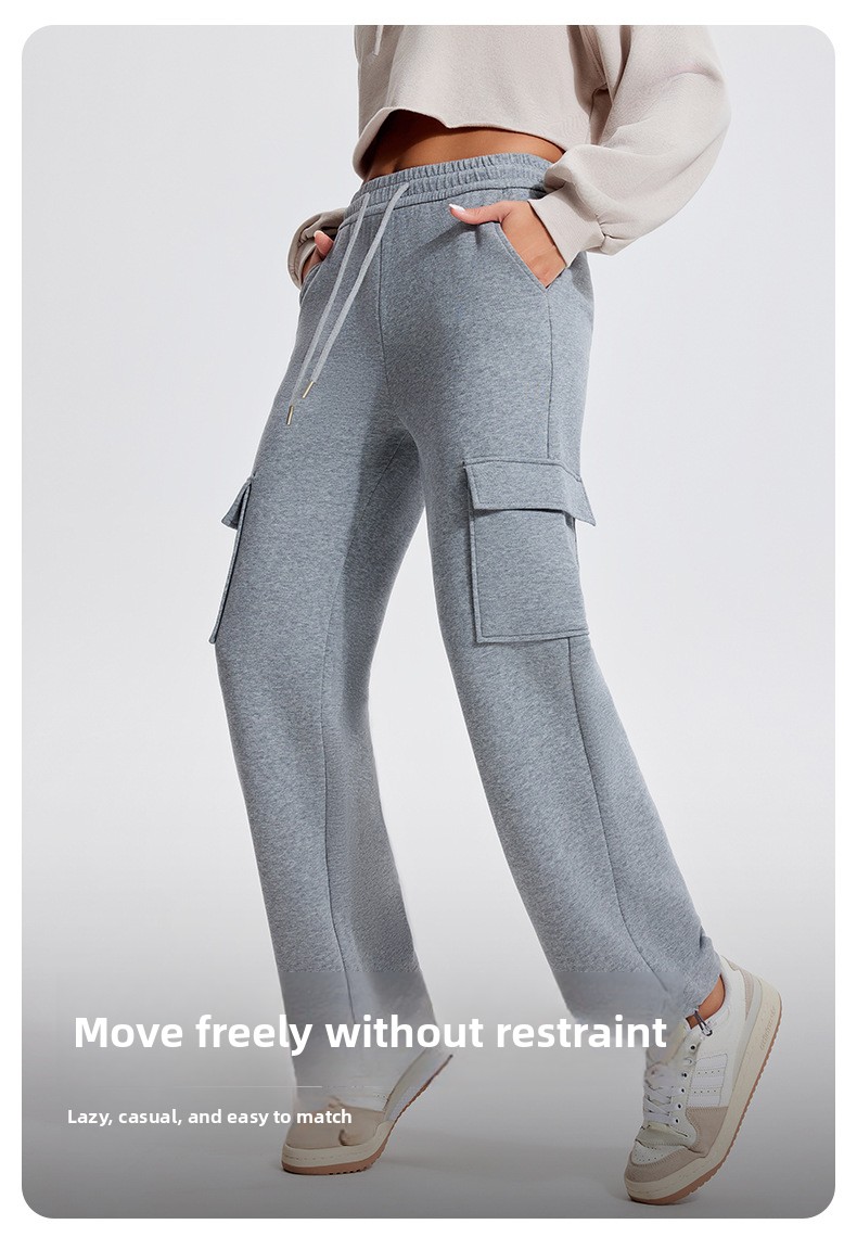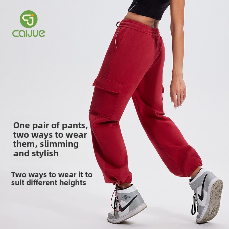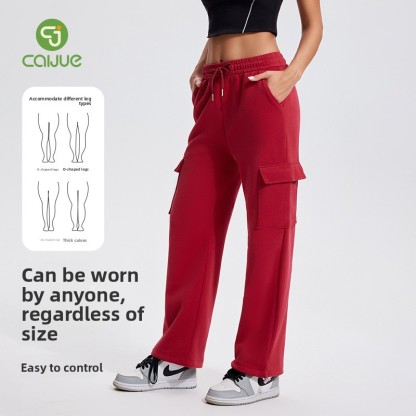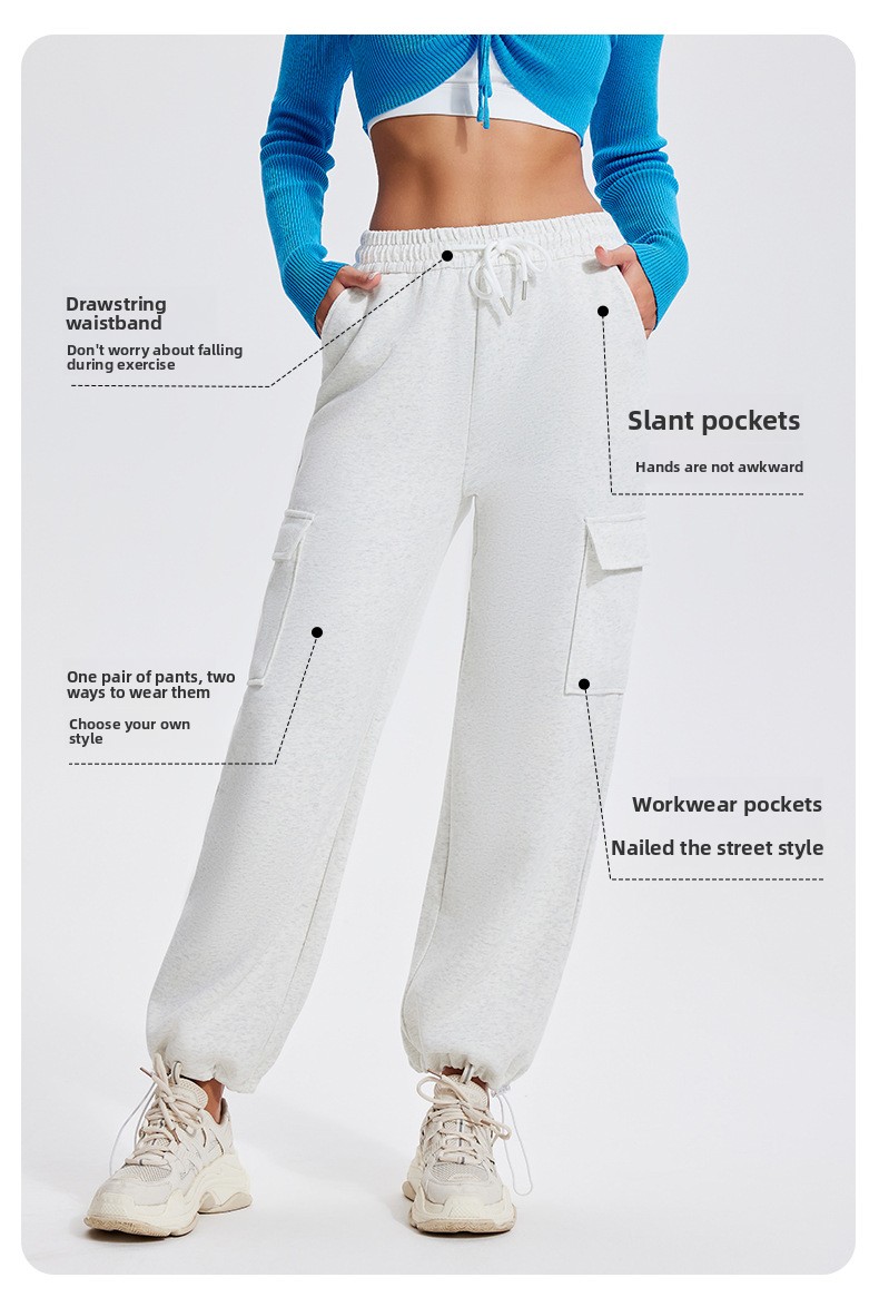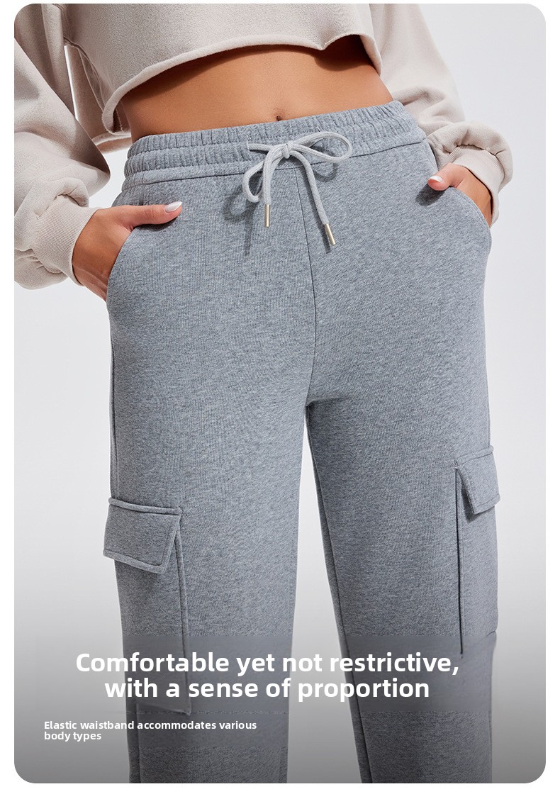 Autumn Winter Sports Casual Pants for Women, Fleece-Lined, Pocketed, Jogger Pants, Loose Fit, Running, Fitness, Stretchy Cargo Pants for Women