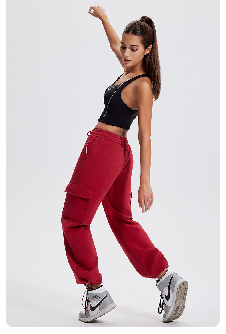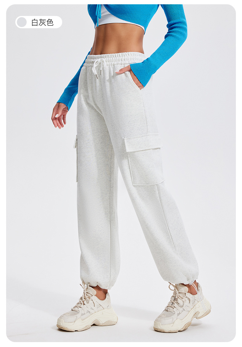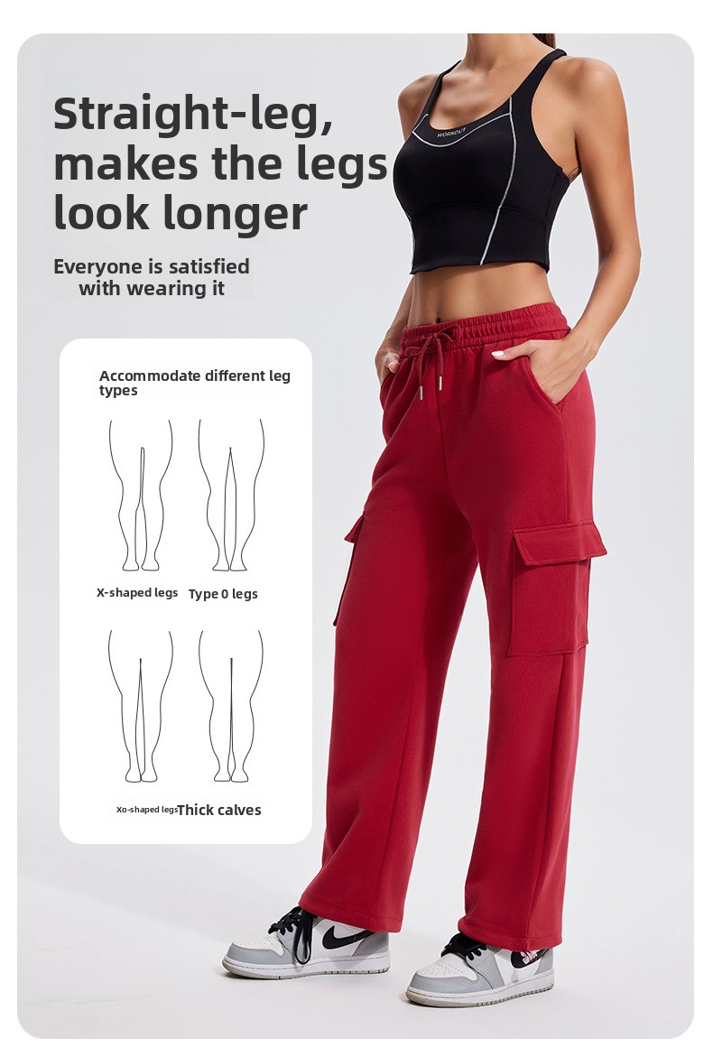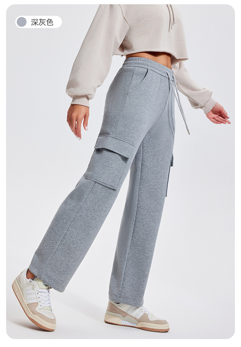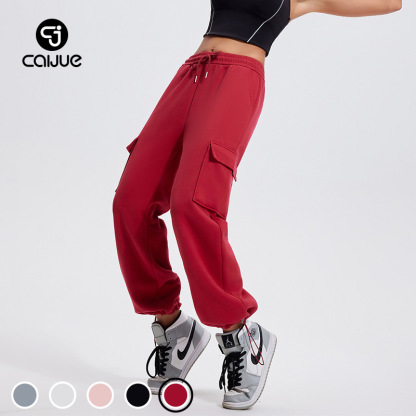 Autumn Winter Sports Casual Pants for Women, Fleece-Lined, Pocketed, Jogger Pants, Loose Fit, Running, Fitness, Stretchy Cargo Pants for Women