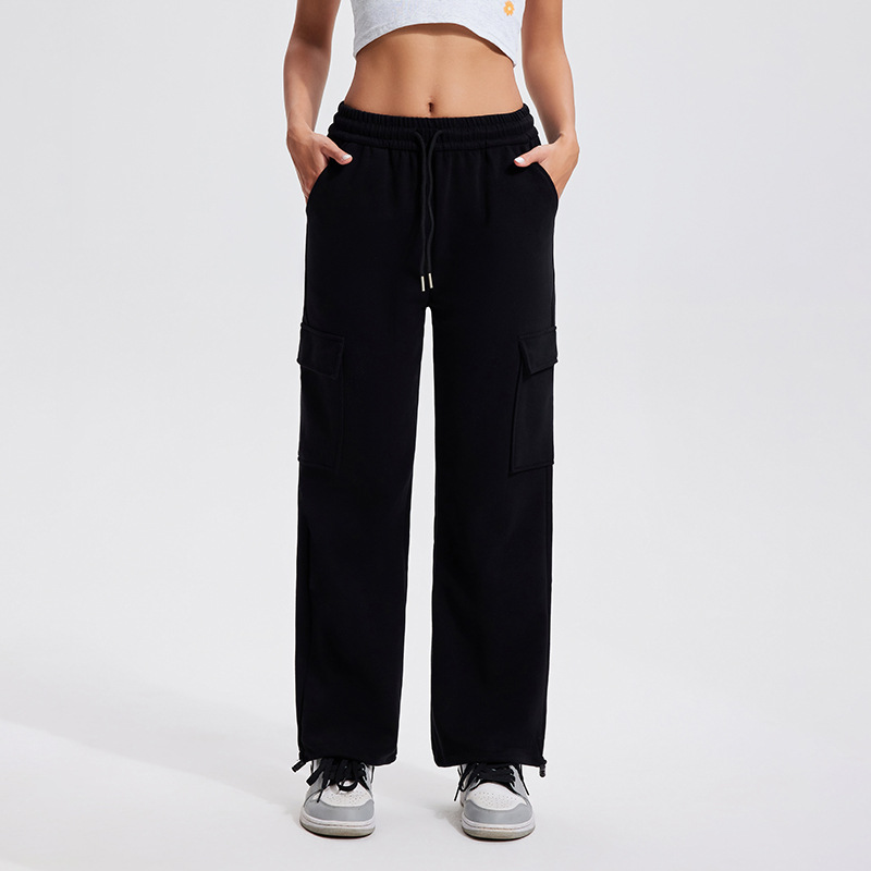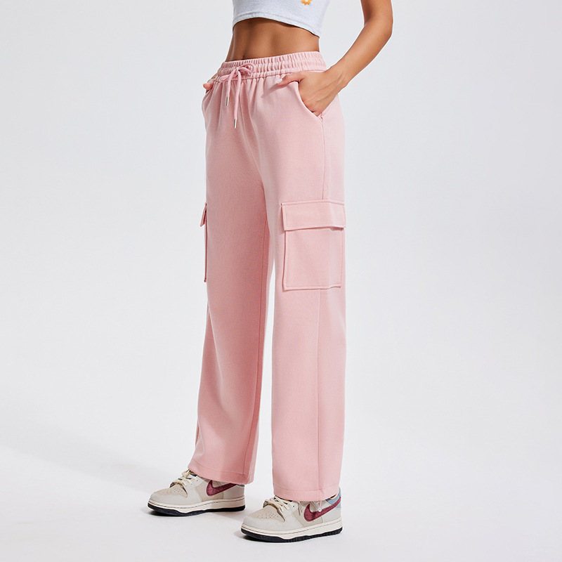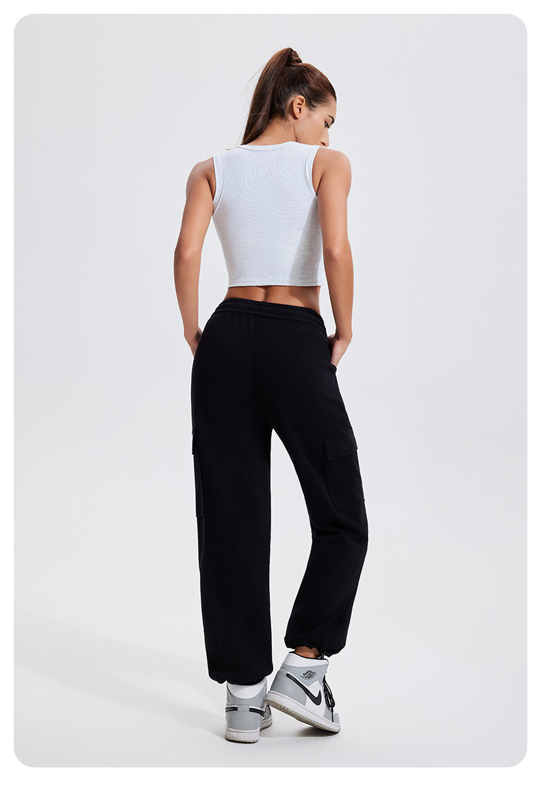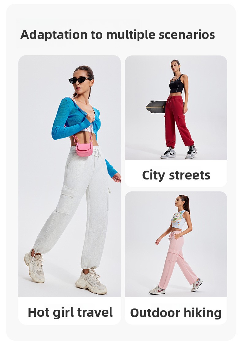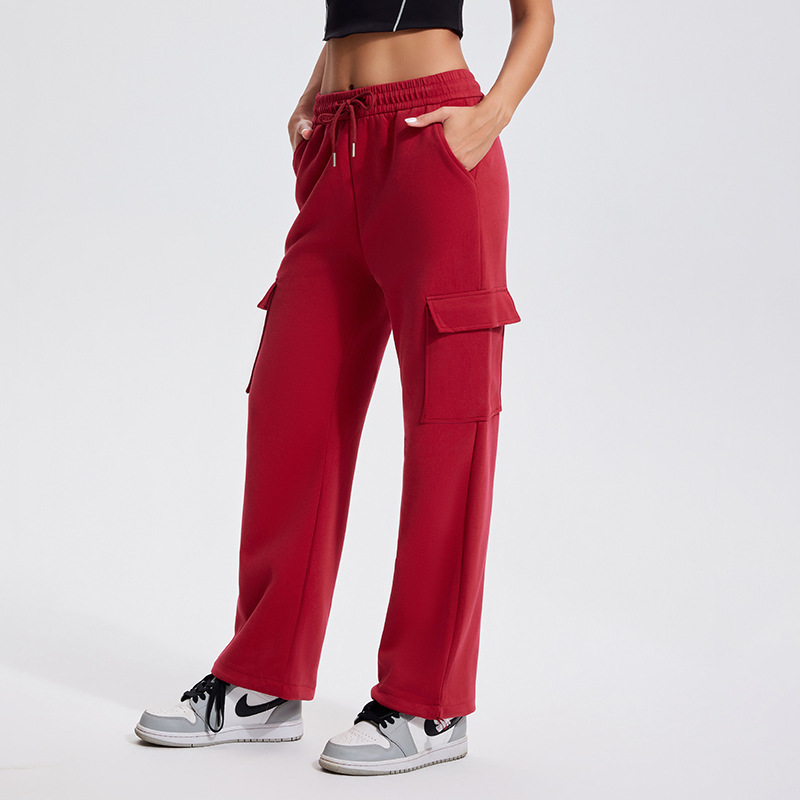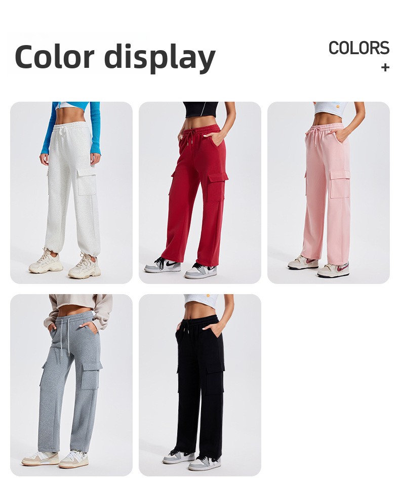 Autumn Winter Sports Casual Pants for Women, Fleece-Lined, Pocketed, Jogger Pants, Loose Fit, Running, Fitness, Stretchy Cargo Pants for Women