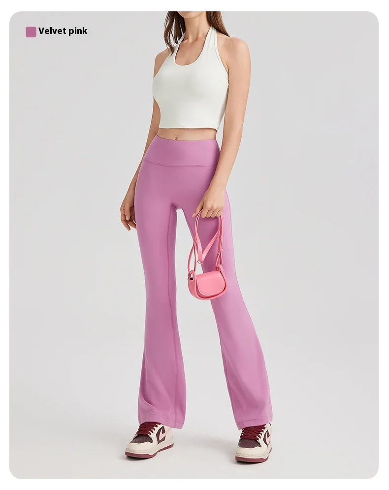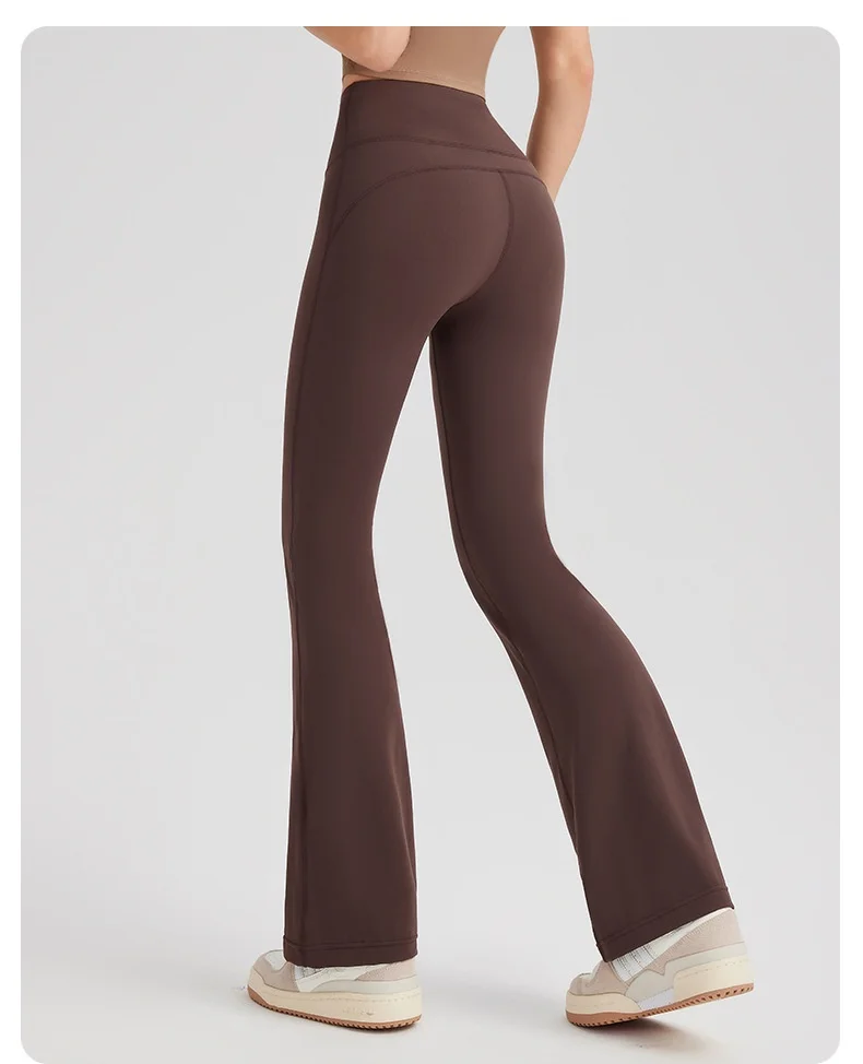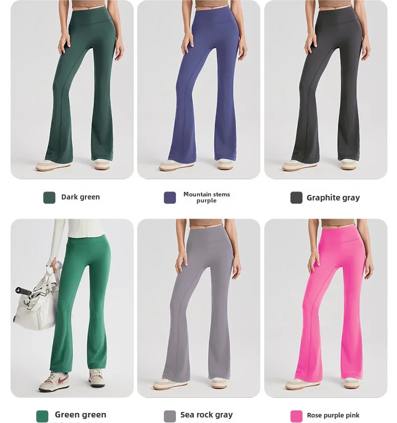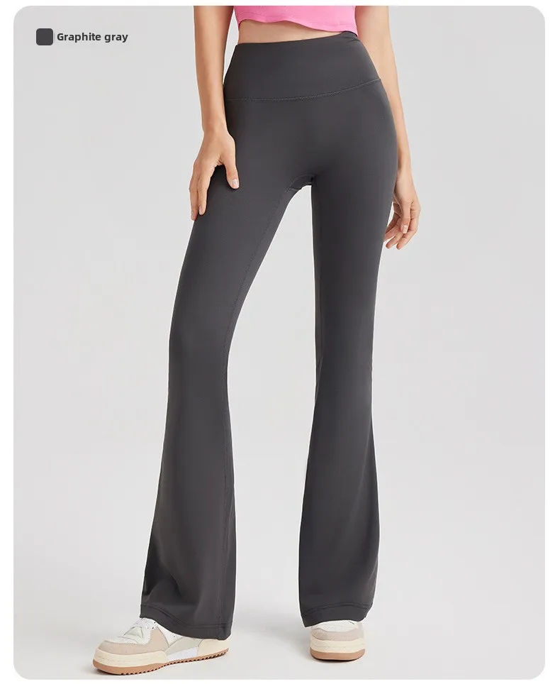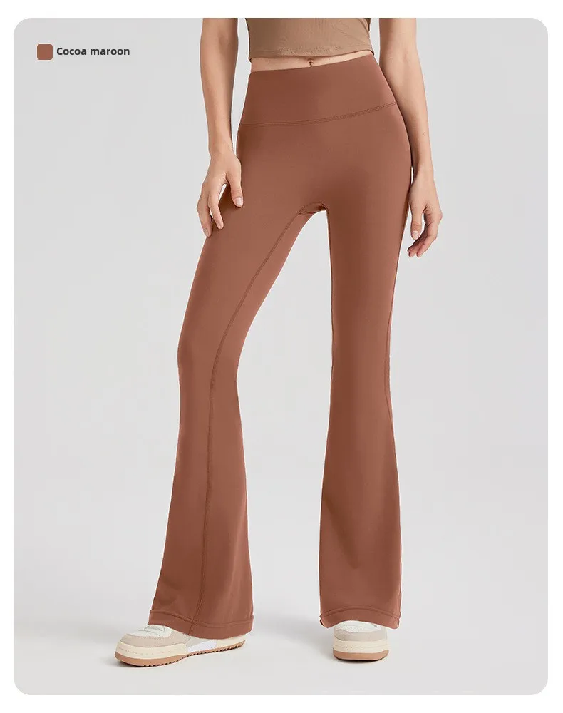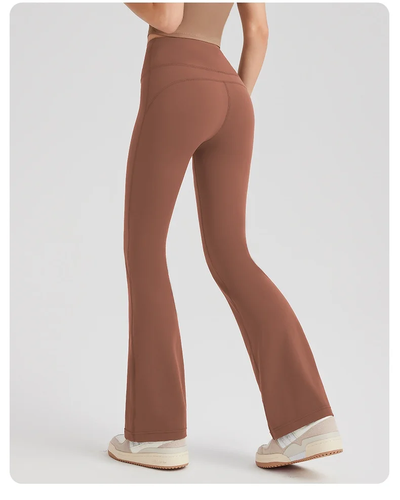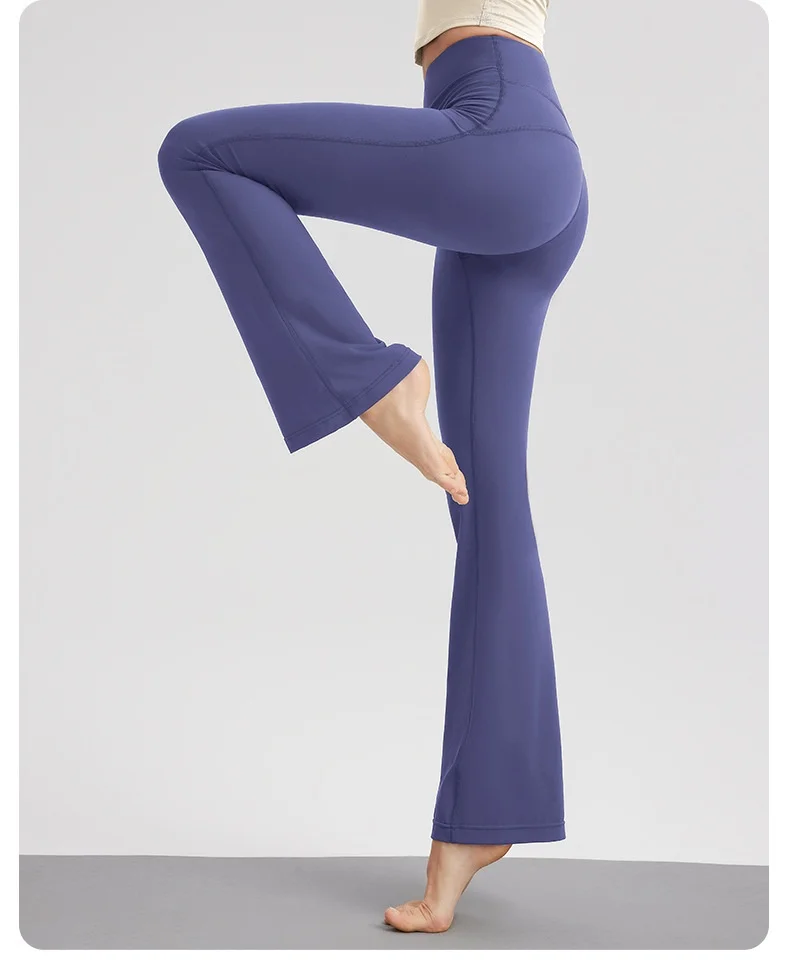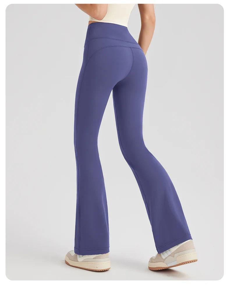 Women's High Waist Peach Butt Lifting Yoga Flare Pants Quick-Drying Nude Slimming Fitness Wide Leg Pants Solid Print