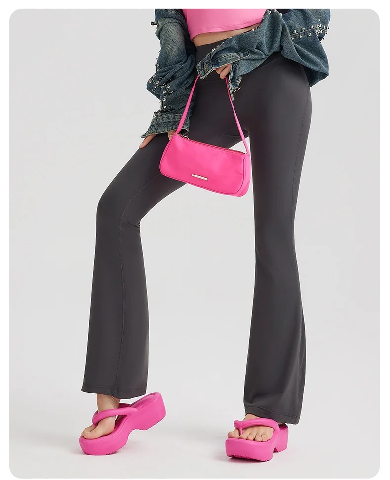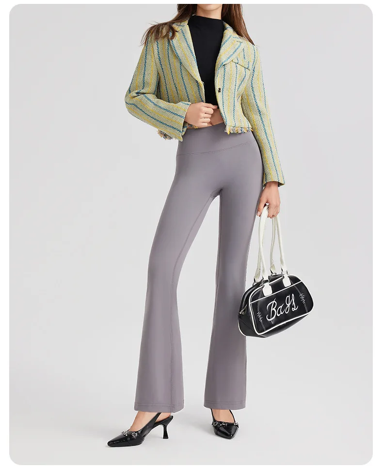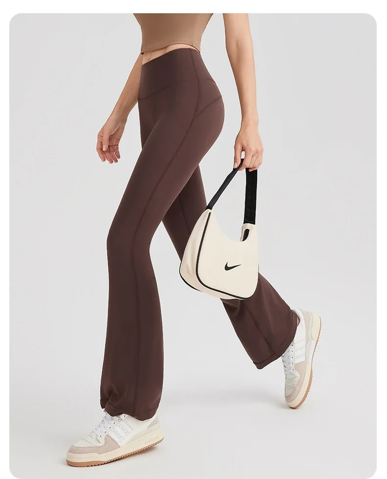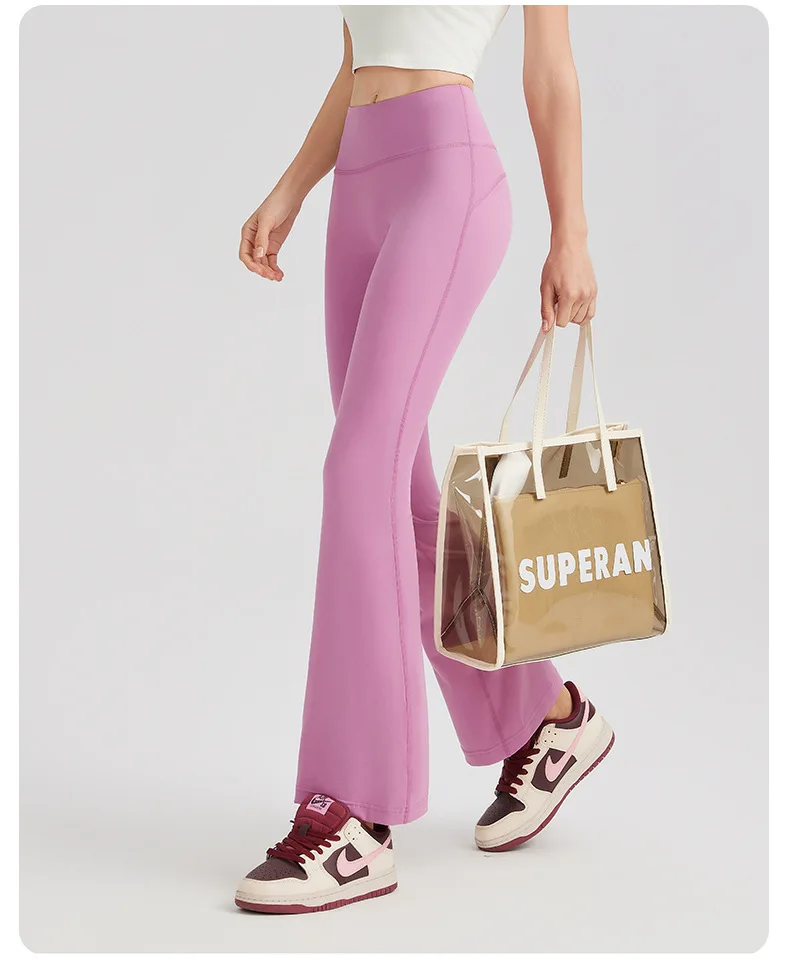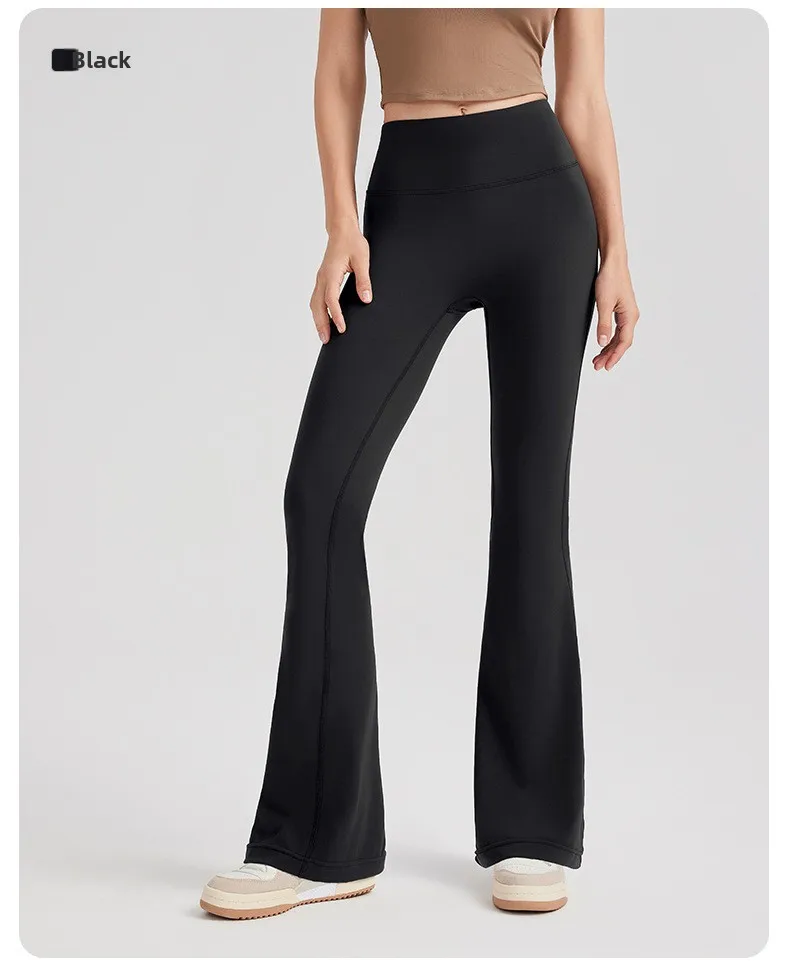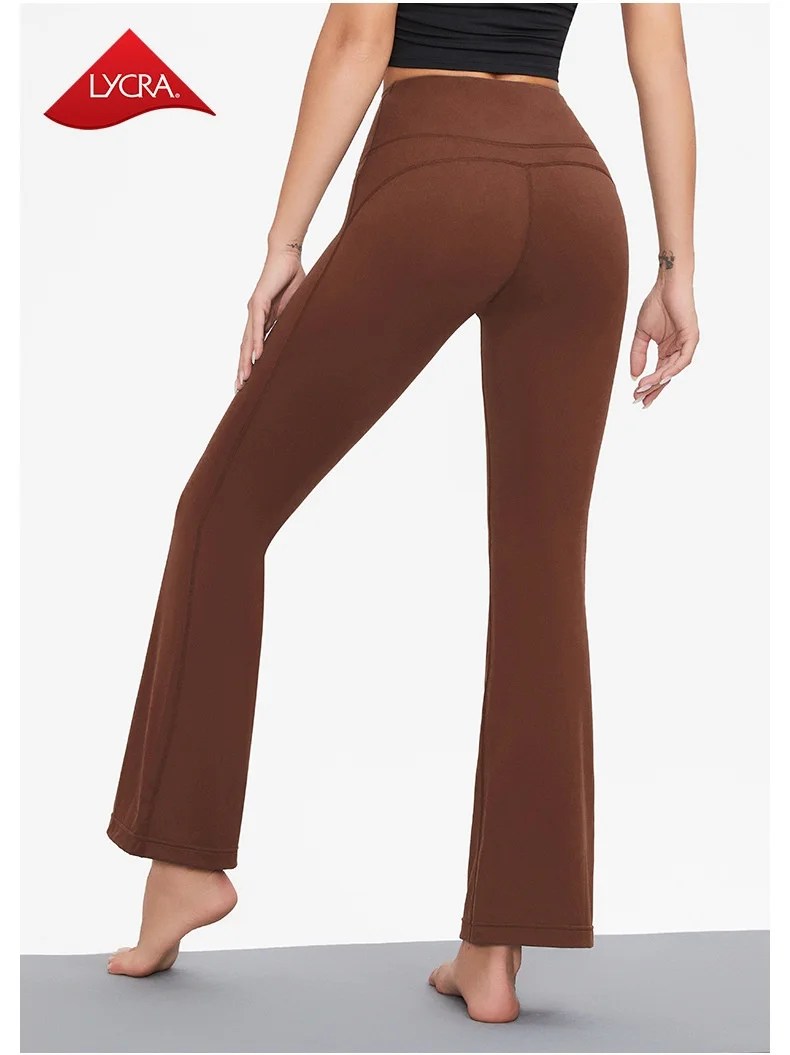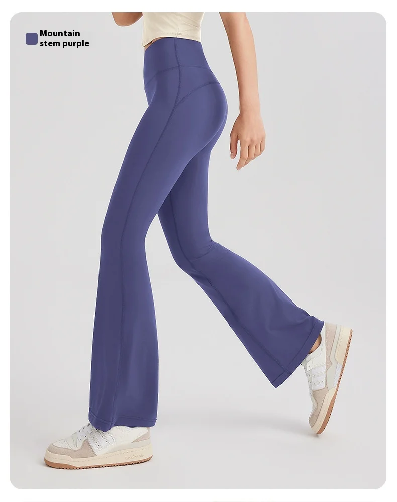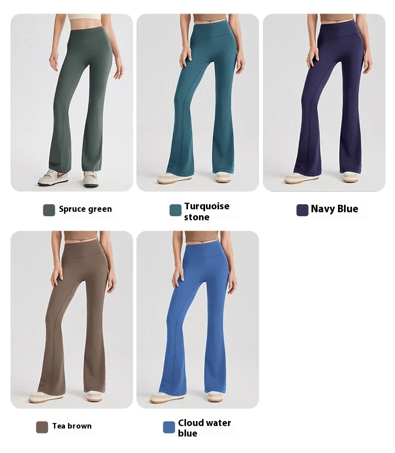 Women's High Waist Peach Butt Lifting Yoga Flare Pants Quick-Drying Nude Slimming Fitness Wide Leg Pants Solid Print