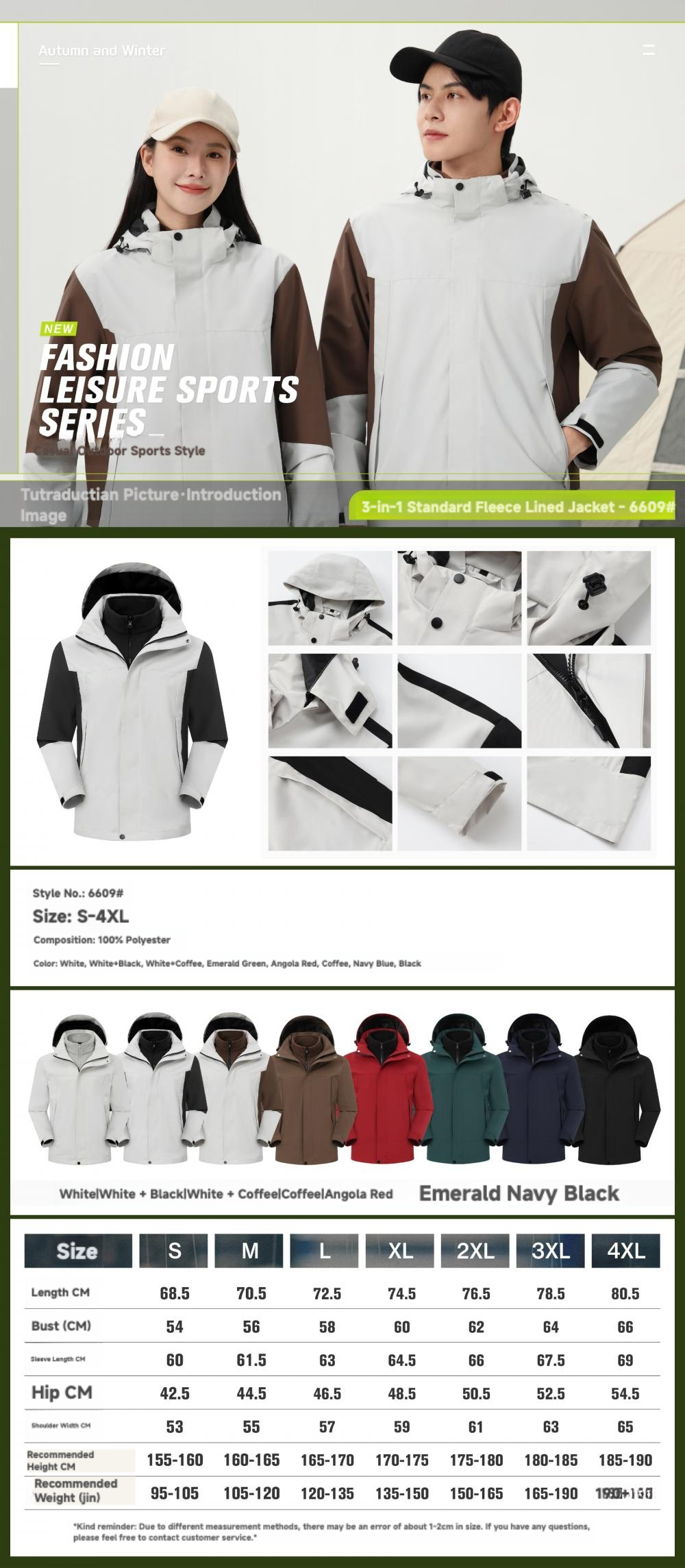Three-in-one standard fleece lining jacket6609